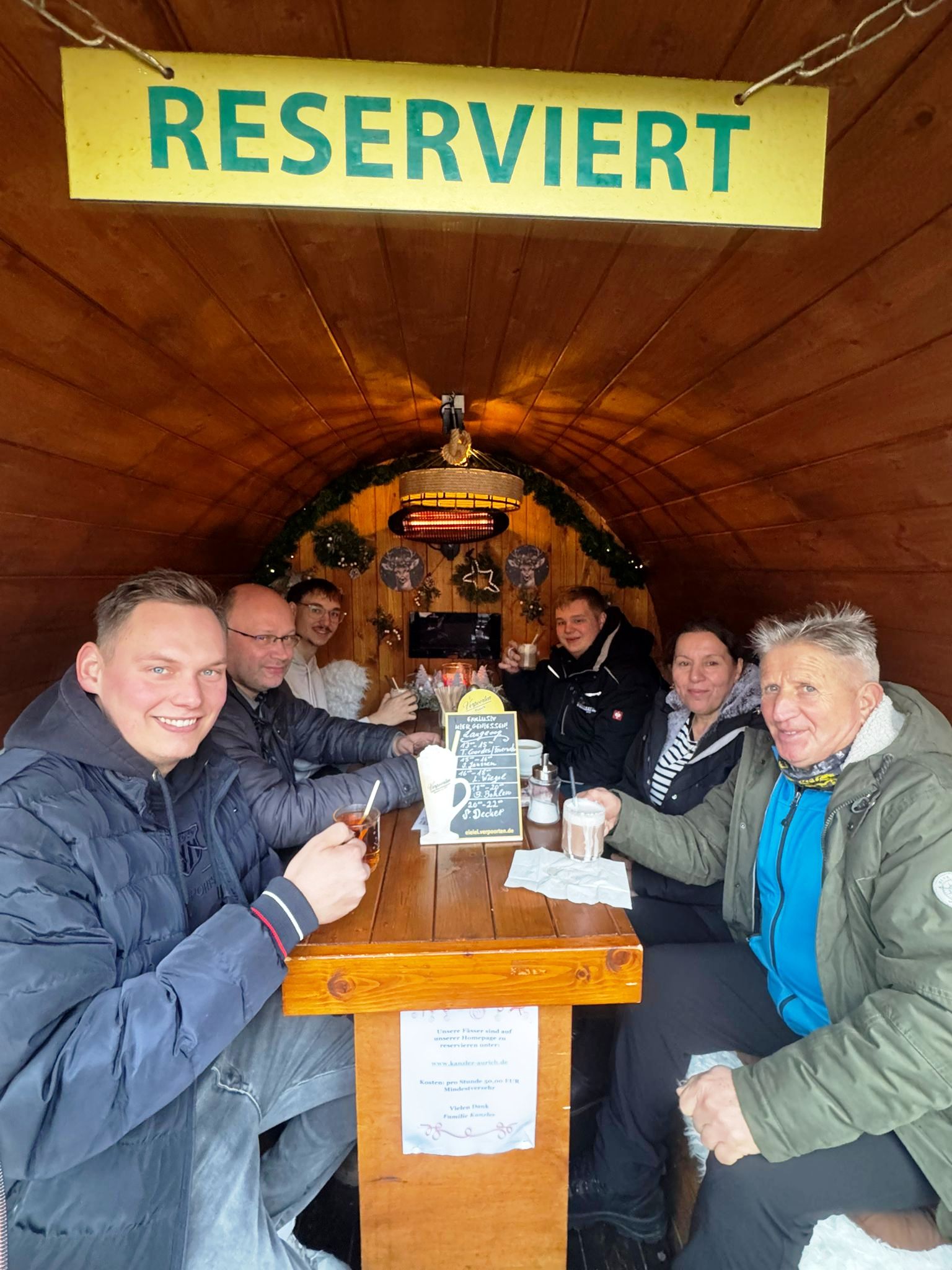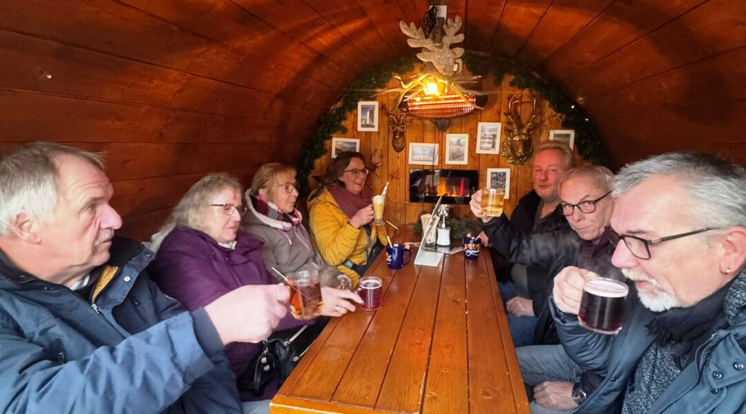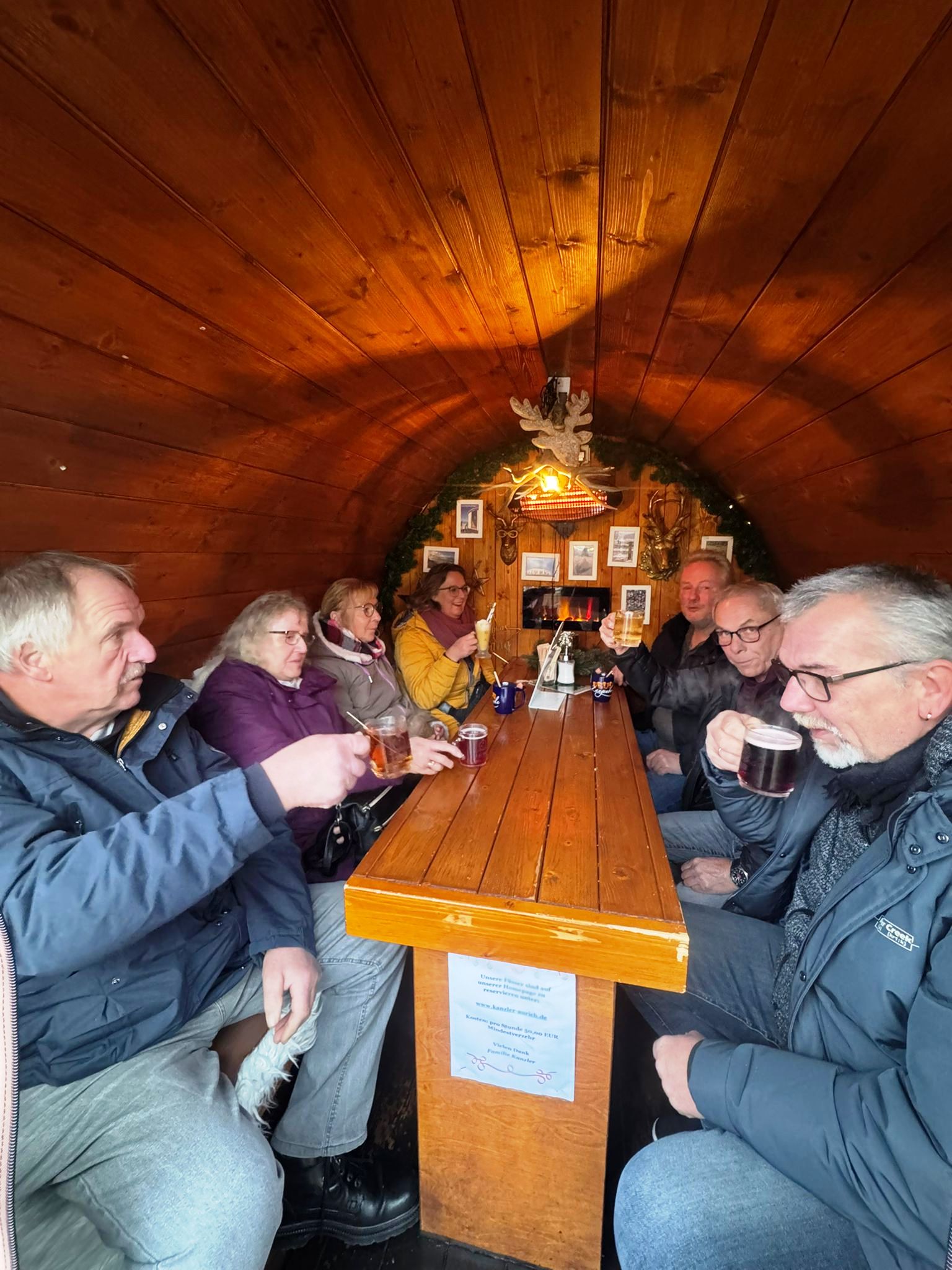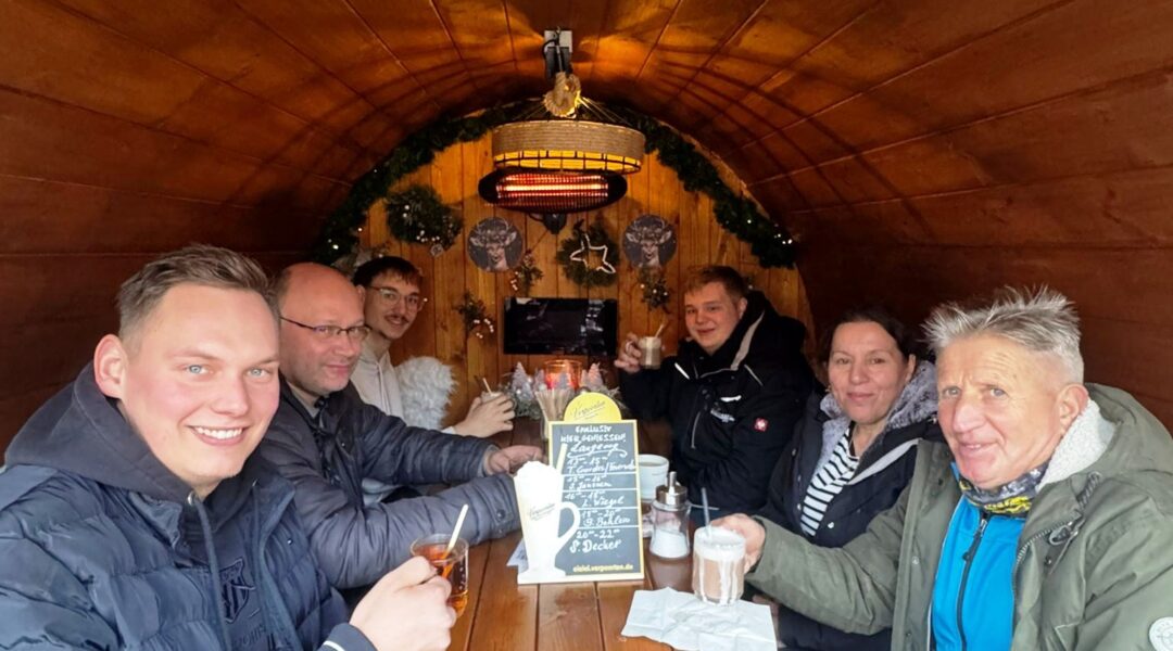 Am 20.12.2025 ging es für die Mitglieder der Ortswehr Wiarden wieder zu einer Überraschungsweihnachtsfeier, keiner aus der Ortswehr wusste Bescheid – außer unserem Organisator Titzian. Es ging mit dem Bus nach Aurich zum Weihnachtsmarkt. In für uns reservierten Fässern konnte man sich es gut gehen lassen: Glühwein, Grog und Essen schmeckten. Anschließend durfte natürlich der Bummel über den Weihnachtsmarkt nicht fehlen. Dann ging es mit dem Bus wieder zurück in das Wangerland nach Wiarden. Im Feuerwehrgerätehaus bei gemütlicher Musik, Kerzenschein und Getränken klang die Weihnachtsfeier dann aus. Dank an unseren Ortsbrandmeister Titzian für diesen schönen Tag.